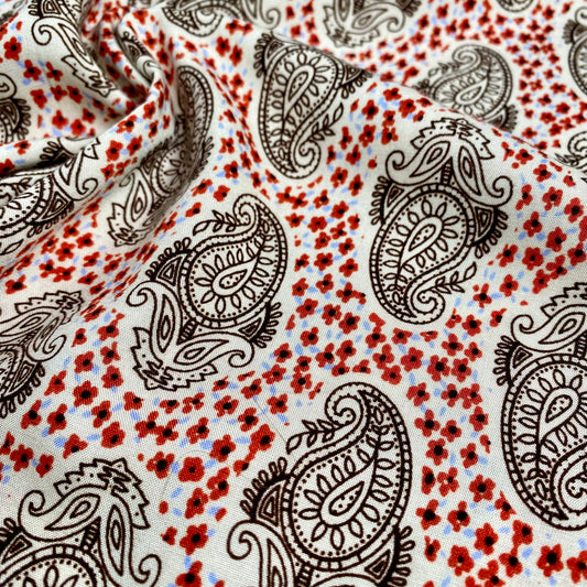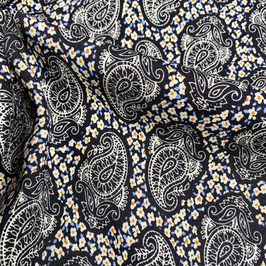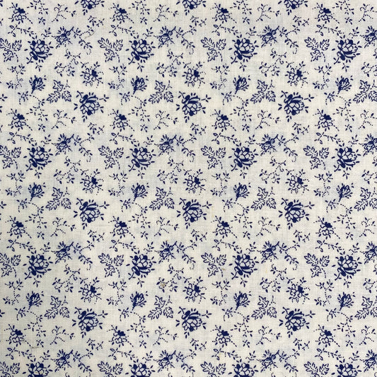 Ex-Designer Ditsy Floral Cotton Linen | Navy & Ivory
