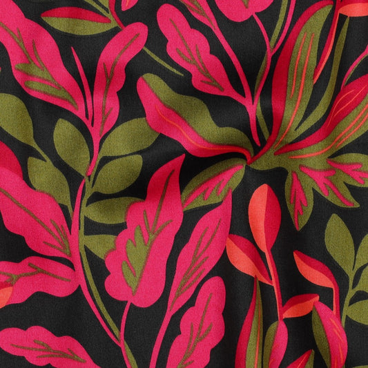 Lush Leaves Cotton Satin in Jet Black | Nerida Hansen